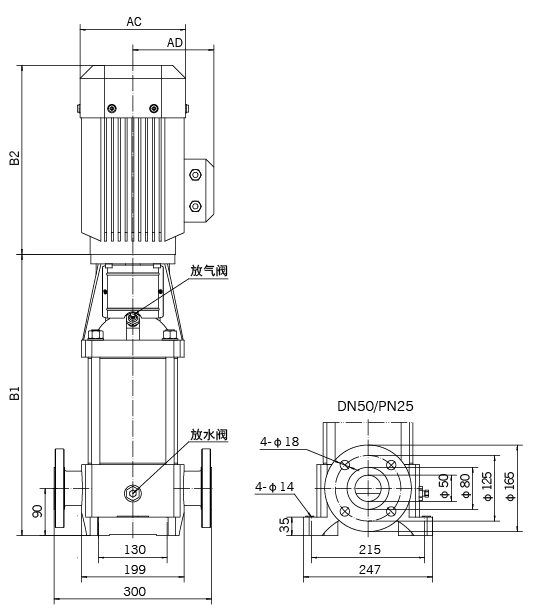 進(jìn)出口口徑: DN25 DN32 DN40 DN50 DN50 DN50 DN65 DN80 DN100 DN100 DN125 DN125 DN150